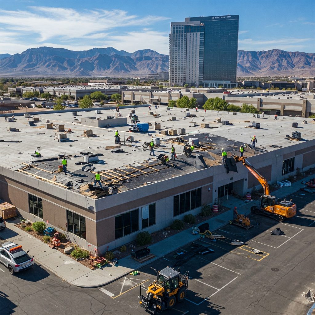 Whether you’re managing a retail center in Henderson, a warehouse in North Las Vegas, or a multi-tenant office near the Strip, our team will ensure your new roof is designed for performance, efficiency, and long-term protection.
